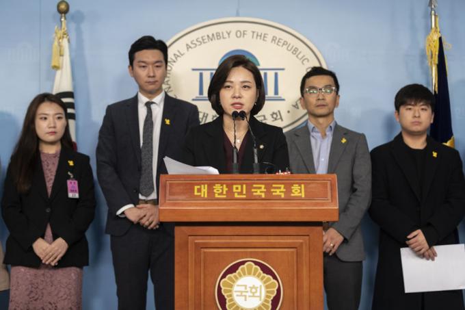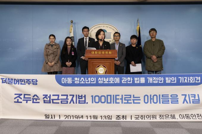 더불어민주당 정은혜 의원이 13일 오후 서울 여의도 국회 정론관에서 '아동·청소년의 성보호에 관한 법률 개정안' 발의 기자회견을 하고 있다.