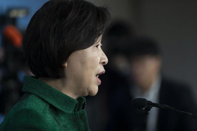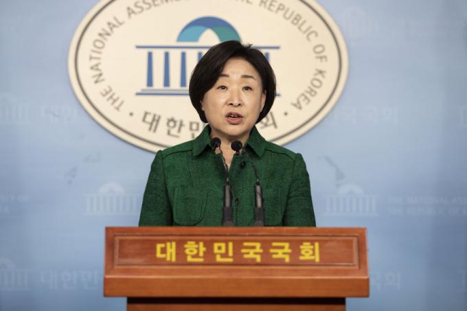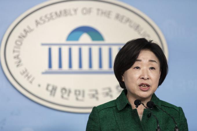 정의당 심상정 대표가 18일 오전 서울 여의도 국회 정론관에서 '국회의원 세비삭감 법안 발의 기자회견'을 하고 있다.