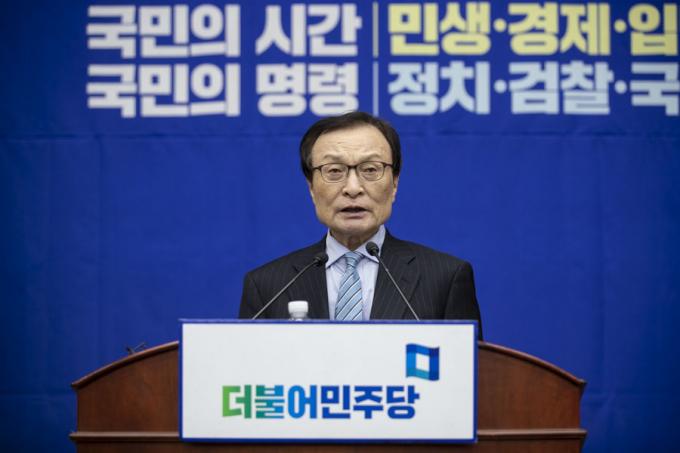 더불어민주당 이해찬 대표가 18일 오후 서울 여의도 국회에서 열린 민주당 의원총회에 참석해 발언하고 있다.