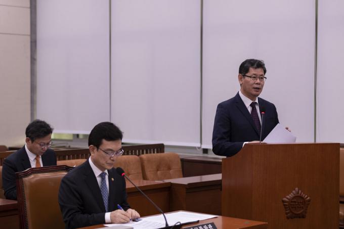 김연철 통일부 장관(오른쪽)이 26일 오후 서울 여의도 국회에서 열린 외교통일위원회 전체회의에 출석해 업무보고를 하고 있다.KPI뉴스 / 문재원 기자 mjw@kpinews.kr