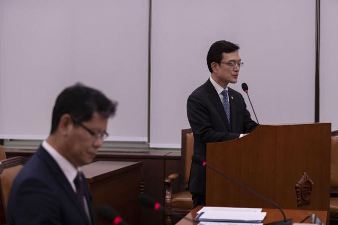 조세영 외교부 제1차관이 26일 오후 서울 여의도 국회에서 열린 외교통일위원회 전체회의에 출석해 업무보고를 하고 있다. 이날 강경화 외교부 장관은 한-아세안 특별정상회의 참석으로 불출석 했다.