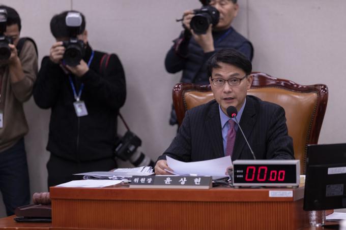 자유한국당 소속 윤상현 국회 외교통일위원회 위원장이 26일 오후 서울 여의도 국회에서 열린 외통위 전체회의를 주재하고 있다.