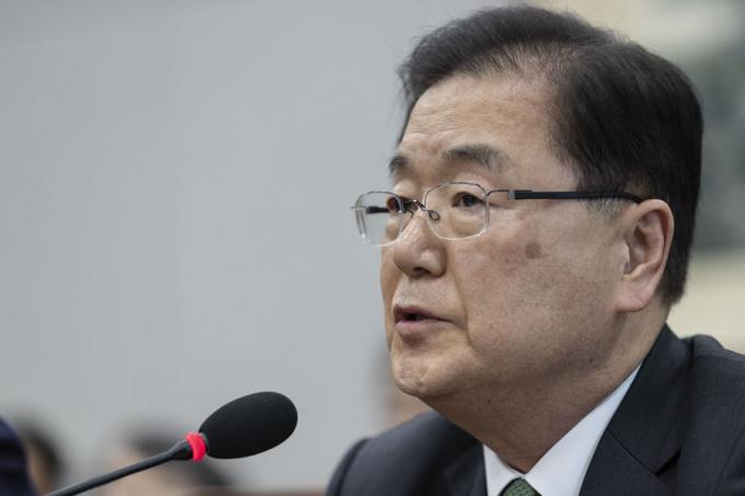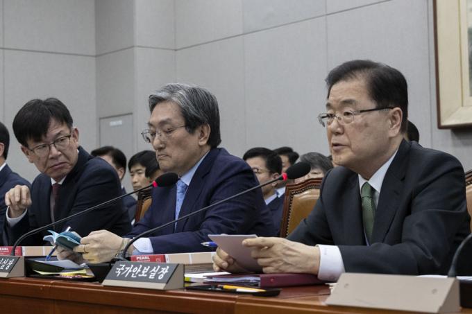 정의용 국가안보실장이 29일 오전 서울 여의도 국회에서 열린 운영위원회 전체회의에 출석해 의원 질의에 답하고 있다.