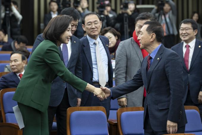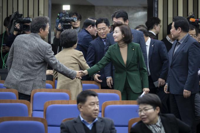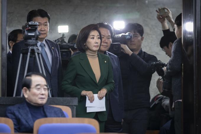 자유한국당 나경원 원내대표가 4일 오전 서울 여의도 국회에서 열린 한국당 의원총회에 참석하고 있다.