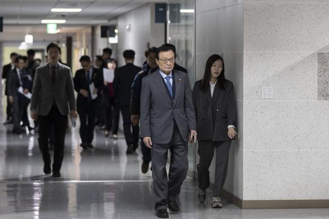 더불어민주당 이해찬 대표가 6일 오전 서울 여의도 국회 의원회관에서 열린 민주당 확대간부회의에 참석하기 위해 이동하고 있다.