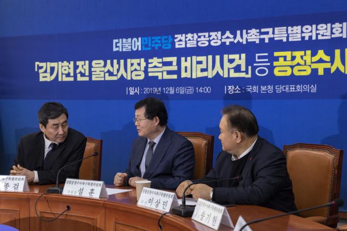 더불어민주당 이종걸 의원(맨왼쪽)과 설훈 의원(가운데)이 6일 오후 서울 여의도 국회에서 열린 '민주당 검찰공정수사촉구특별위원회 회의'에 참석해 대화하고 있다.