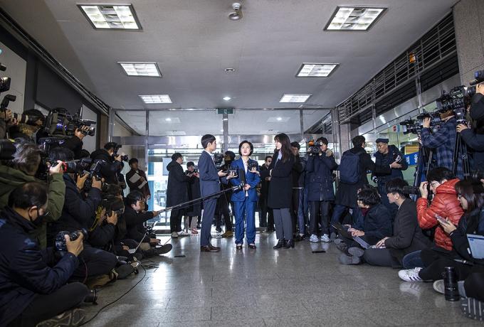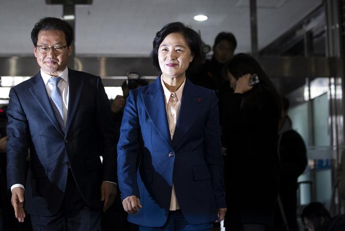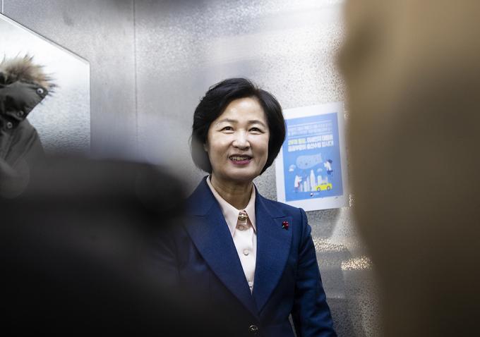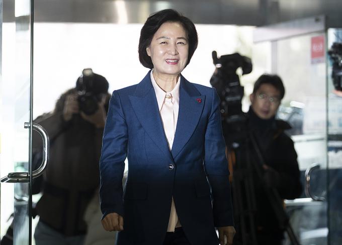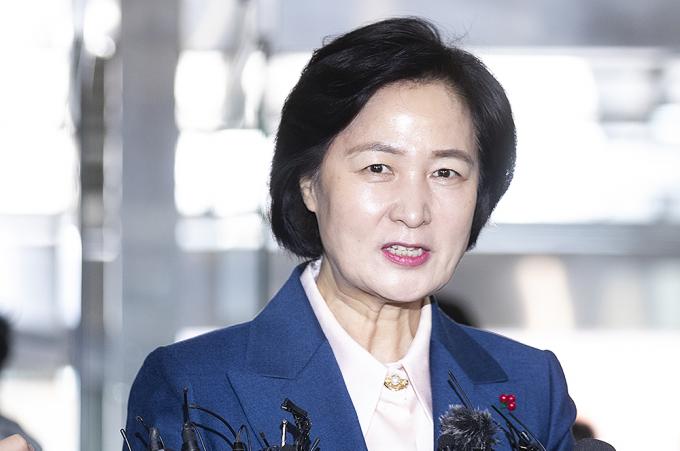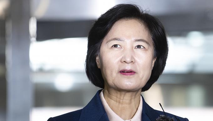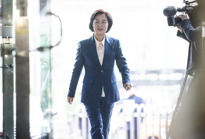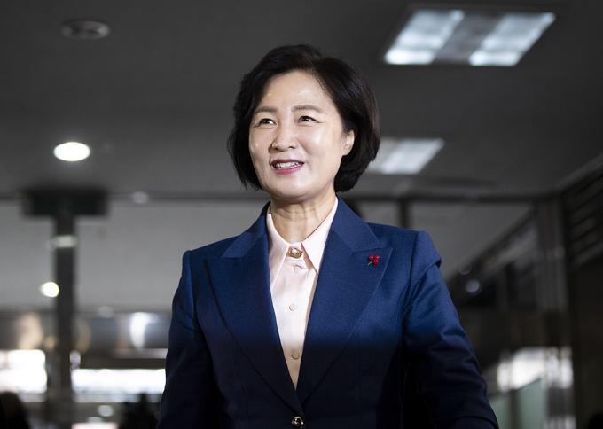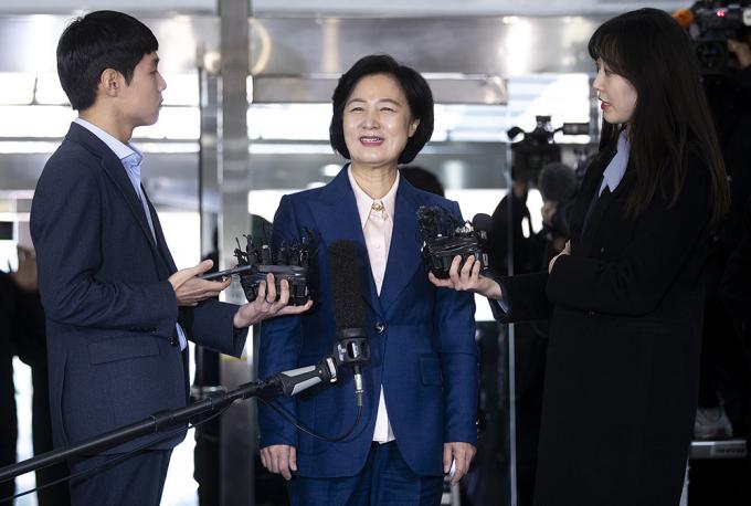 추미애 법무부 장관 후보자가 9일 오전 서울 양천구 서울남부준법지원센터에 마련된 인사청문회 준비단 사무실로 출근하며 취재진의 질문에 답하고 있다.