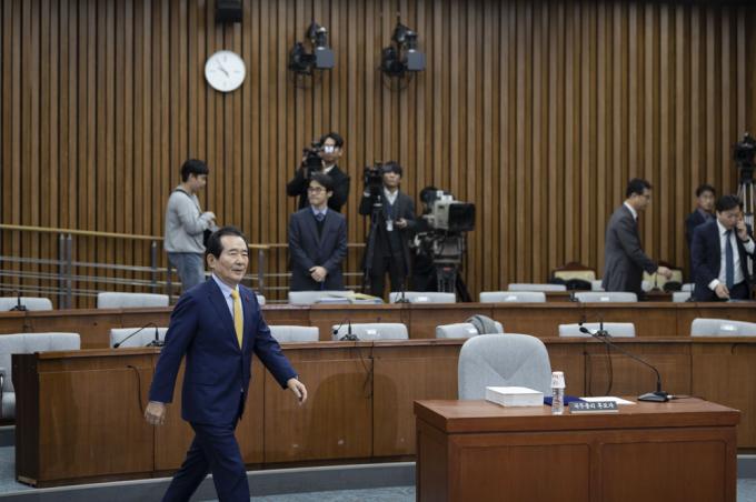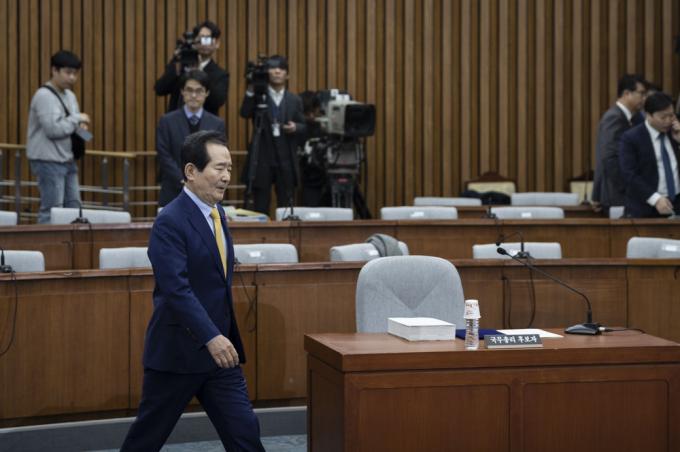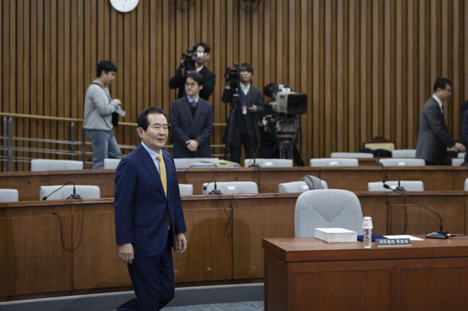 정세균 국무총리 후보자가 7일 오전 서울 여의도 국회 제3회의장에서 열린 인사청문회에 출석하고 있다.