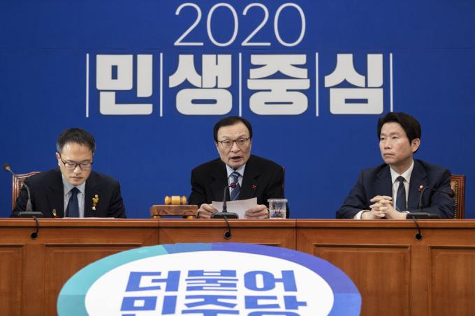 더불어민주당 이해찬 대표가 8일 오전 서울 여의도 국회 당대표회의실에서 열린 최고위원회의에 참석해 발언하고 있다.