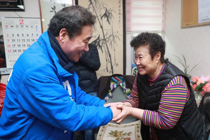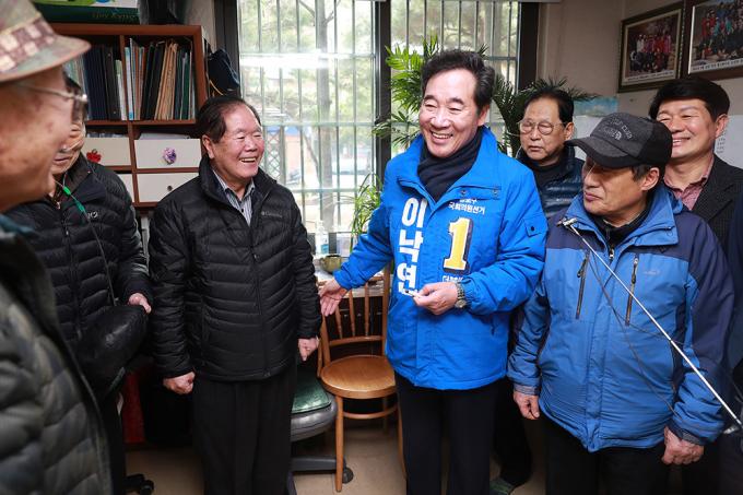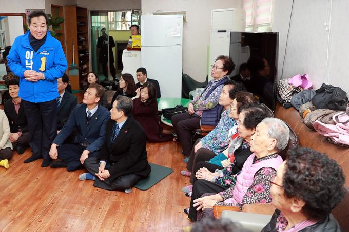 4·15 총선에서 종로에 출마하는 더불어민주당 소속 이낙연 전 국무총리가 13일 오전 서울 종로구 숭인동의 한 경로당에서 어르신들에게 인사말을 하고 있다.