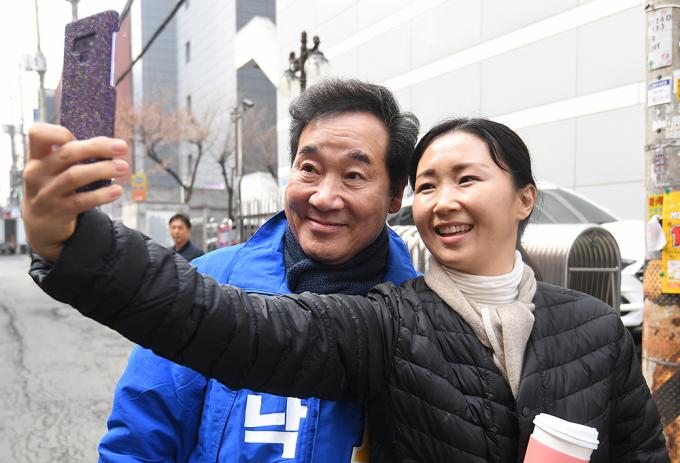 더불어민주당 후보로 4.15 총선 종로에 출마하는 이낙연 전 국무총리가 13일 오후 서울 종로구 숭인동 일대를 찾아 주민들과 인사를 나누며 기념촬영을 하고 있다.