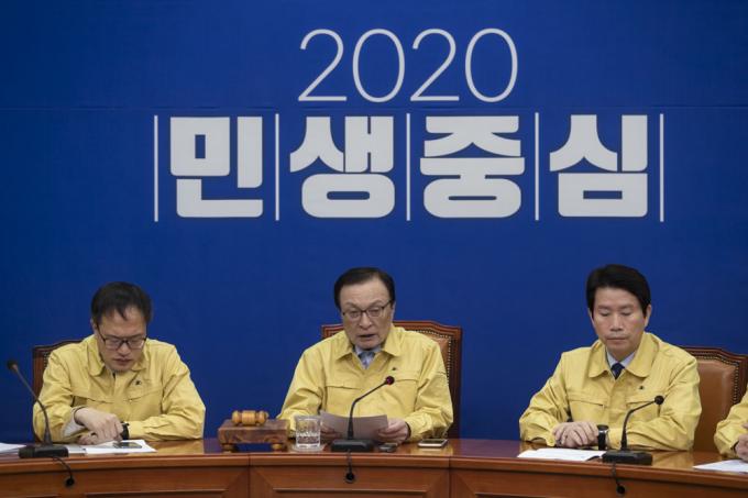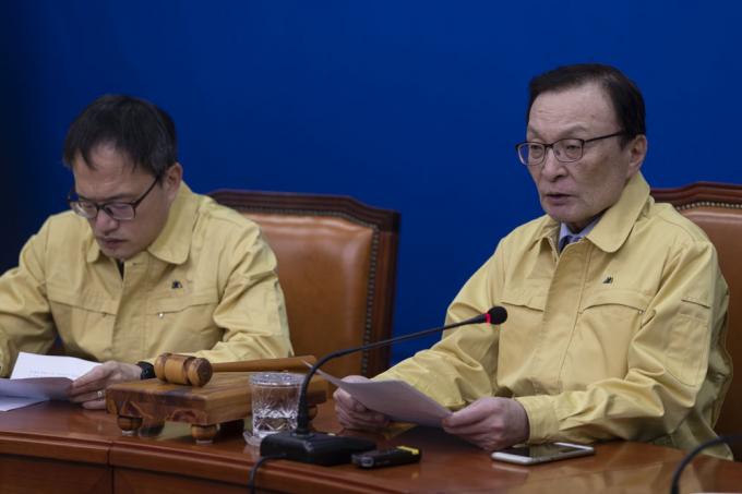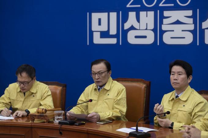 더불어민주당 이해찬 대표(가운데)가 21일 오전 서울 여의도 국회 당대표회의실에서 열린 최고위원회의에 참석해 발언하고 있다.