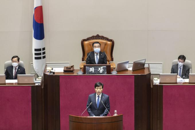 국회 정보위원회 위원장에 당선된 더불어민주당 김민기 의원이 26일 오후 서울 여의도 국회 본회의에 참석해 인사하고 있다.KPI뉴스 / 문재원 기자 mjw@kpinews.kr