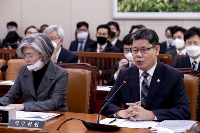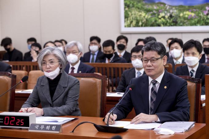 김연철 통일부 장관이 4일 오후 서울 여의도 국회에서 열린 외교통일위원회 안건심사에 출석해 의원 질의를 듣고 있다.