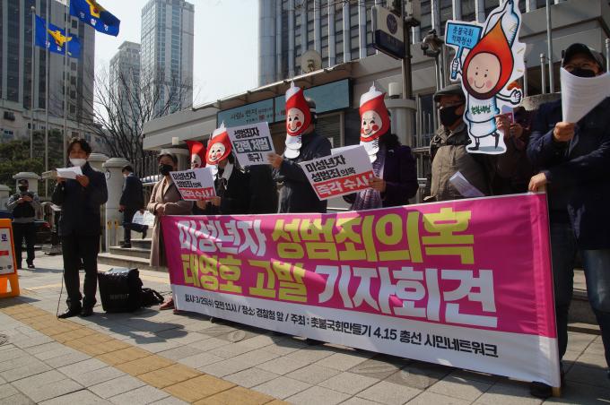 태 후보 "진실 아니다"…우리 당국 공식 발표 없어 시민단체 '촛불국회만들기 4·15총선시민네트워크'는 25일 오전 서울 미근동 경찰청 앞에서 기자회견을 열고 태영호(태구민) 미래통합당 국회의원 후보를 고발한다고 밝혔다. 태 후보는 현재 통합당 강남갑 후보로 확정된 상태다.