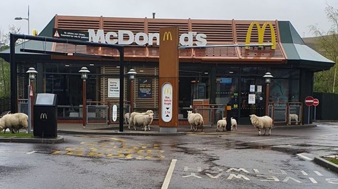 영국 웨일즈의 맥도날드에서 양들이 모여있는 모습이 포착되기도 했다.