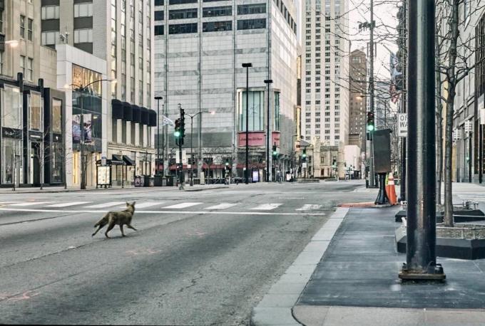 대기오염도 감소와 더불어 인간의 발길이 뜸해진 도심에서 야생동물도 자주 출몰한다.