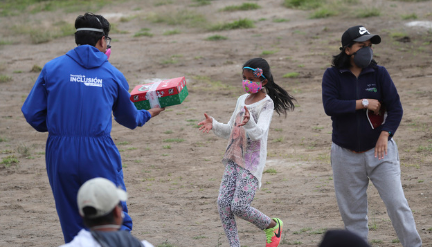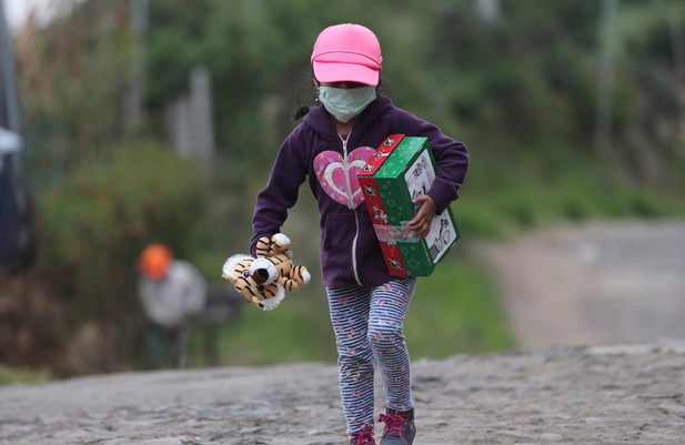 에콰도르 수도 키토 인근 야루키에서 1일(현지시간) '어린이날' 기념 행사가 열렸다. 이날 키토시와 민간단체 등은 아이들에게 선물을 나눠줬다. 어린이들은 코로나19 탓에 거리두기를 하면서도 캐릭터 마스크, 나비 모양 날개 등으로 '어린이'임을 뽐냈다.