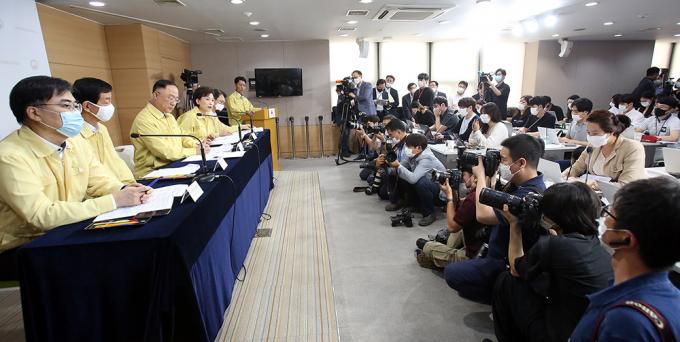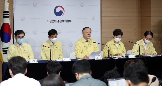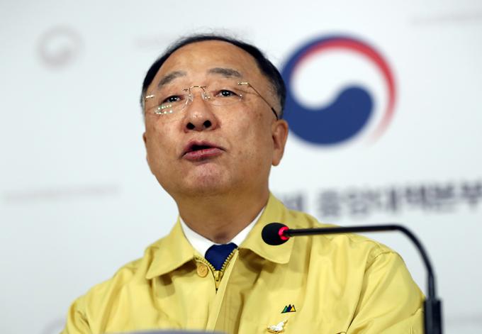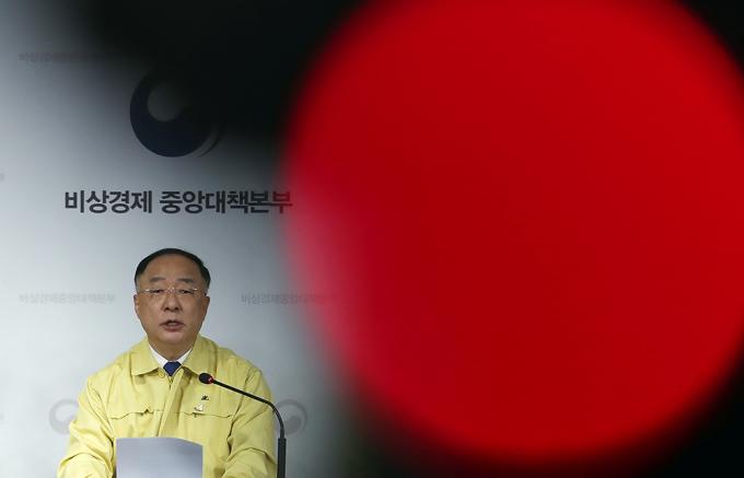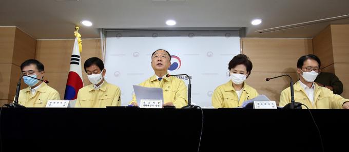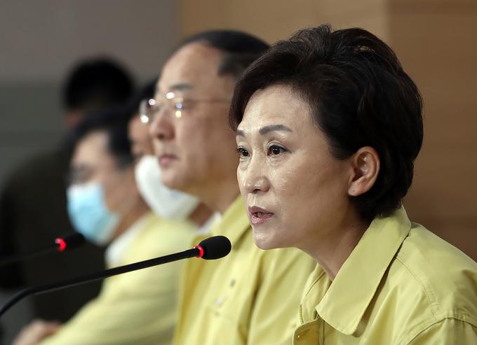 홍남기 경제부총리 겸 기획재정부 장관과 김현미 국토교통부 장관을 비롯한 관계장관들이 10일 오전 서울 종로구 정부서울청사에서 '주택시장 안정 보완대책'을 발표하고 있다.