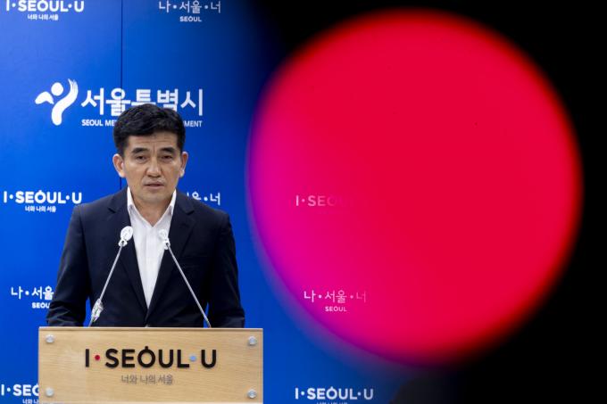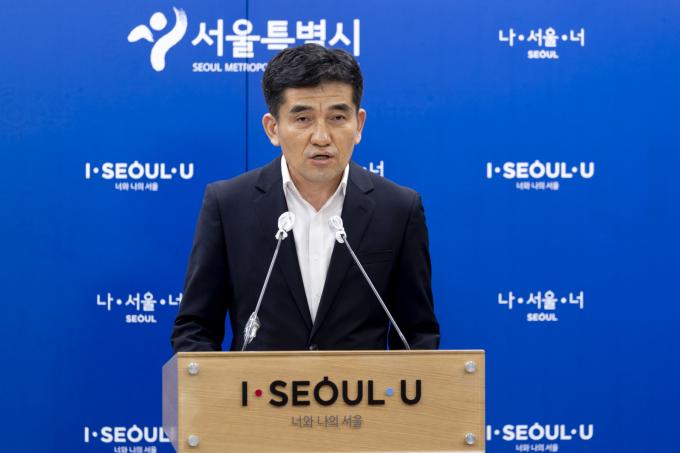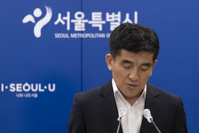 황인식 서울시 대변인이 15일 오전 서울시청에서 '직원 인권침해 진상규명'에 대한 서울시 입장을 발표하고 있다.