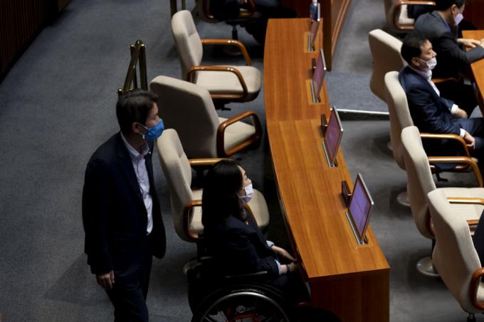 통일부 장관 후보자인 더불어민주당 이인영 의원이 22일 오후 서울 여의도 국회에서 열린 제380회 국회(임시회) 제4차 본회의 대정부 질문에 참석하고 있다.
