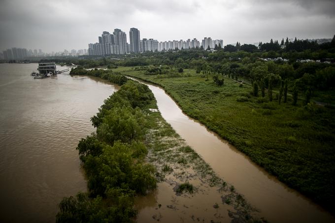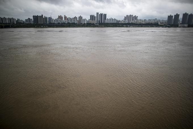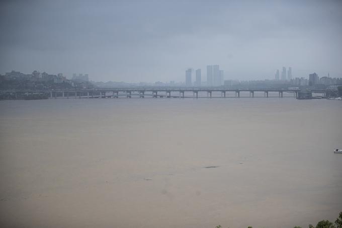 지난 주말부터 중부지방에 집중되고 있는 폭우로 한강 수위가 상승한 3일 오전 서울 동작대교에서 바라본 한강에 흙탕물이 흐르고 있다.