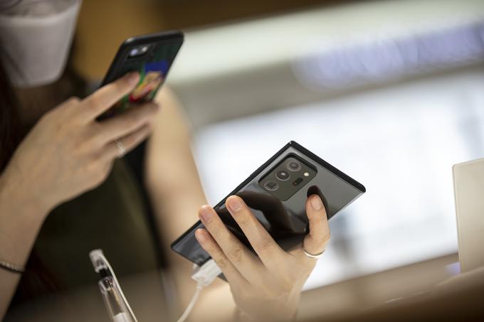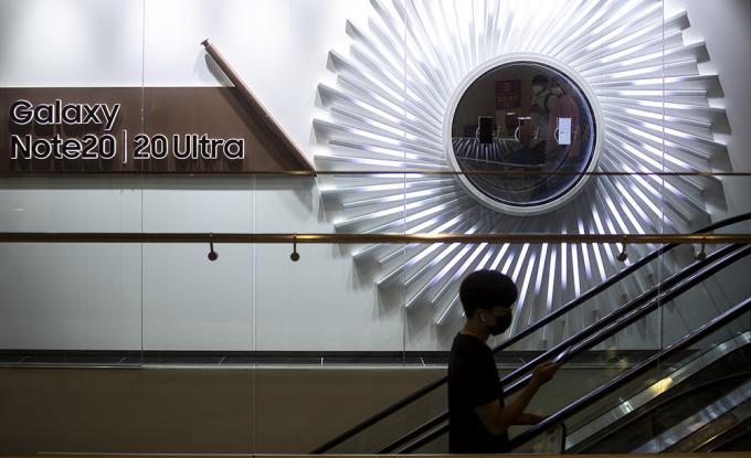 갤럭시 노트20과 갤럭시Z 폴드2 등 삼성전자의 하반기 신제품들이 공개된 6일 서울 서초구 삼성전자 딜라이트샵을 찾은 시민들이 신제품 체험하고 있다.