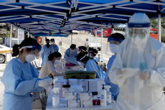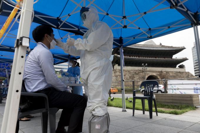 서울 중구 남대문시장의 한 상가에서 코로나19 확진자가 발생한 가운데 10일 오후 시장에 마련된 임시선별진료소에서 한 시민이 검사를 받고 있다. 서울시와 중구에 따르면 남대문시장의 케네디상가에서 상인 8명과 상인 가족 1명을 포함해 총 9명이 코로나19에 확진됐다.