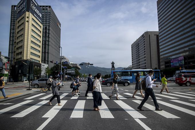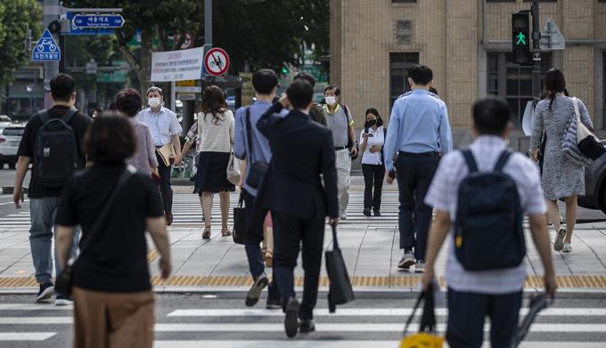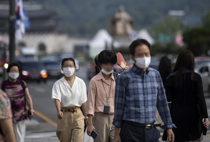 49일째 계속되던 장마가 소강상태를 보인 12일 오전 서울 종로구 광화문 인근에서 우산을 쓰지 않은 시민들이 출근길에 발걸음을 옮기고 있다.