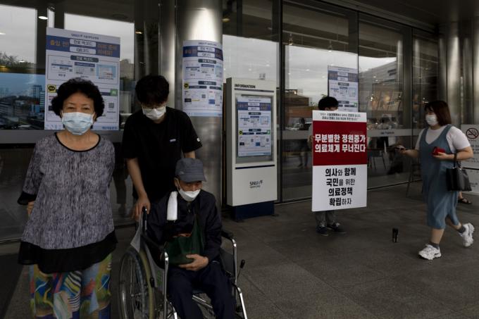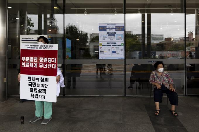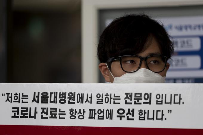 전공의·전임의 등 의료계 무기한 집단휴진이 지속되고 있는 1일 오전 서울 종로구 서울대학교병원에서 해당 병원 전문의가 정부의 의료정책에 반대하는 1인 시위를 하고 있다.