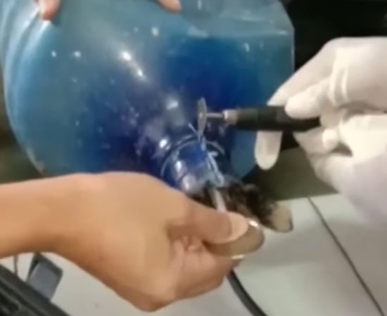 자신의 몸집보다 10배는 더 큰, 18리터 크기 물통 속에서 고양이는 이러지도 저러지도 못하고 가만히 머리를 내놓고 있었다. 구조 역시 쉽지 않아 보였다. 단단한 플라스틱 물통을 거칠게 잘랐다간 고양이가 다칠 수도 있기 때문이다.