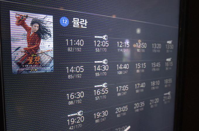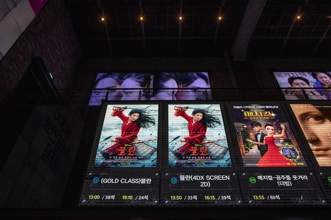 디즈니 신작영화 '뮬란'이 개봉한 17일 서울시내의 영화관의 모습.