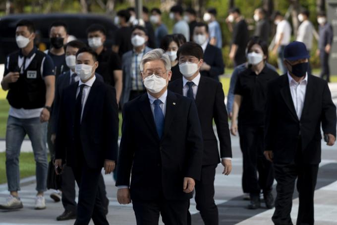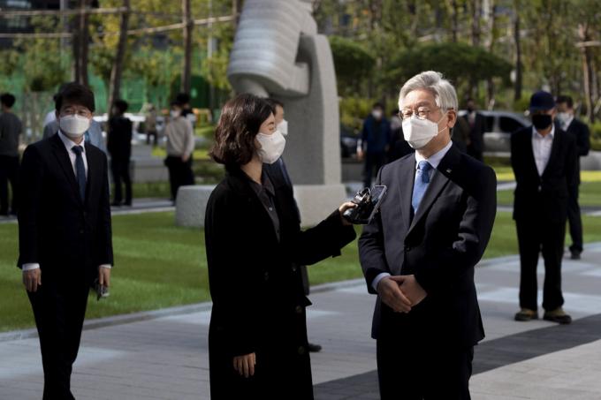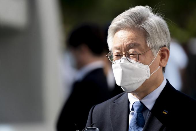 이재명 경기도지사가 대법원 무죄취지 파기환송결정 이후 첫 파기환송심이 열린 21일 오후 경기 수원고등법원에 출석하며 입장을 밝히고 있다.