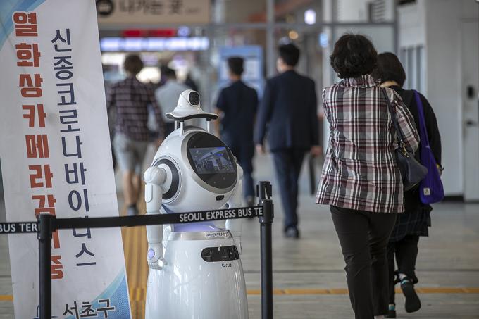 서초구는 오는 민족대명절 추석을 앞두고 코로나19 확산을 막기위해 서울고속버스터미널, 센트럴시티터미널, 서울남부터미널에 적외선 카메라와 안면인식 기술이 탑재된 인공지능(AI) 방역로봇을 배치했다. AI 방역로봇은 주변의 움직이는 사람을 자동으로 추적해 안면 인식 후 체온을 측정한다. 1분에 120명의 체온을 측정해 코로나19 의심 증상 유무를 감지한다. 서초구는 지난 5월부터 구청사 로비에, 6월부터는 초·중·고 51곳에 AI로봇을 배치해 운영 중이다.