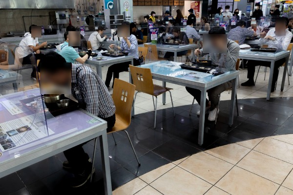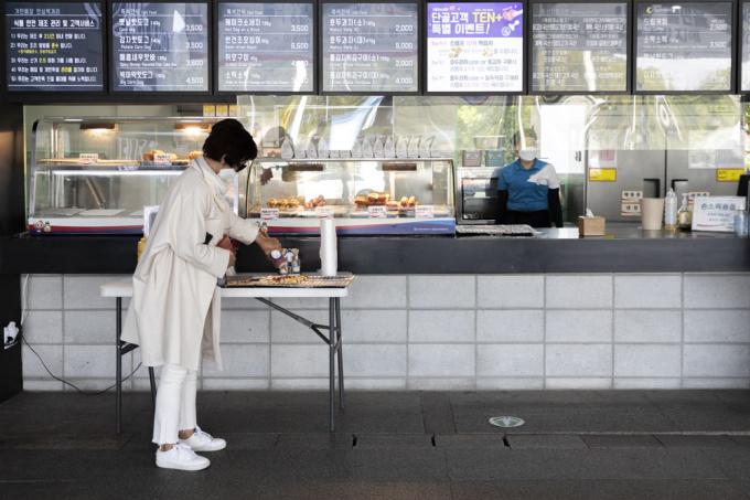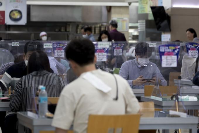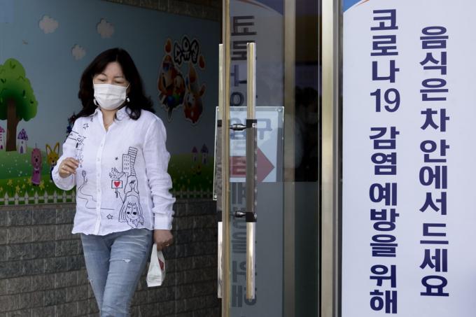 추석 연휴를 이틀 앞둔 28일 오후 서울 서초구 경부고속도로 만남의 광장(부산방면)에서 마스크를 착용한 시민이 음식물을 포장해 나오고 있다.