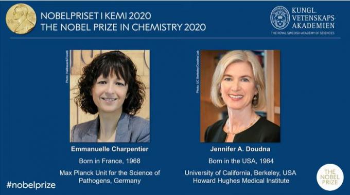 스웨덴 왕립과학원 노벨위원회는 2020년 노벨화학상 수상자로 에마뉘엘 샤르팡티에(52, 프랑스 출생) 독일 막스플랑크연구소 교수와 제니퍼 A. 다우드나(56, 미국 출생) UC버클리 교수를 선정했다고 7일 발표했다.