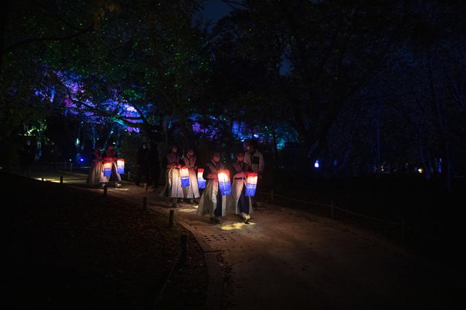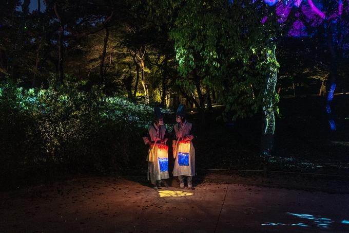 14일 오후 서울 종로구 창경궁 숲길에서 궁중문화축전-빛이 그리는 시간 미디어 아트가 펼쳐지고 있다.
