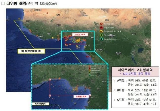 정부는 서아프리카 고위험 해역 내 조업 제한을 위한 관계 법령을 정비하는 등 보호장치를 마련할 계획이며, 관련 업계에도 이들 해역에서 조업을 자제할 것을 당부하고 있다.