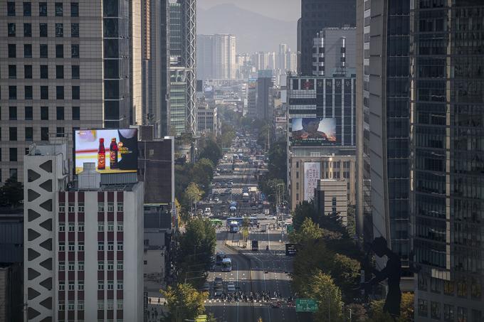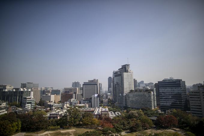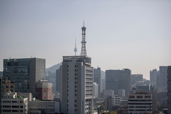중부지방 초미세먼지 농도가 110일 만에 '나쁨' 수준을 보인 20일 오후 서울 도심이 뿌옇게 보이고 있다.