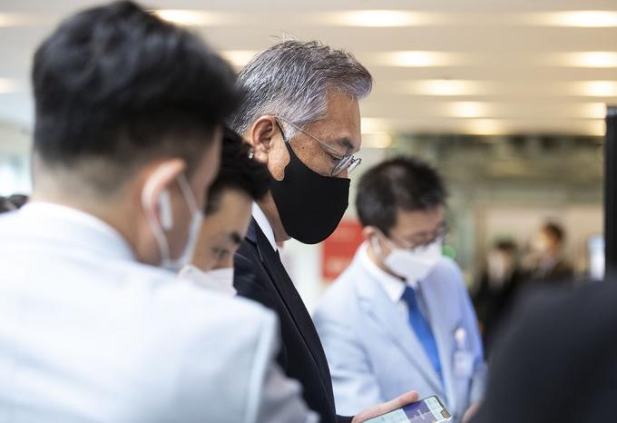 정진석 국민의힘 의원이 26일 오후 서울 강남구 삼성서울병원 장례식장에 마련된 故 이건희 삼성그룹 회장의 빈소 조문을 하고 있다.
