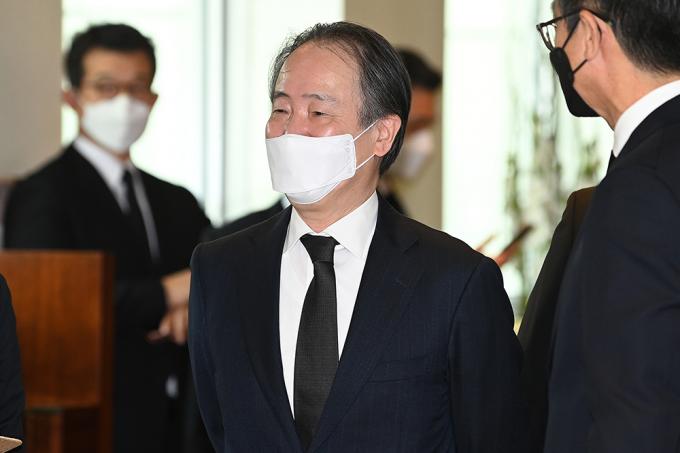 도미타 고지 주한일본대사가6일 오후 서울 강남구 삼성서울병원 장례식장에 마련된 故 이건희 삼성그룹 회장의 빈소 조문을 한 뒤 장례식장을 나서고 있다.