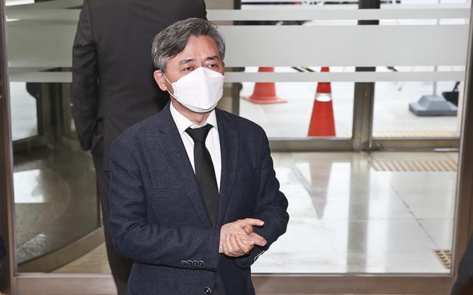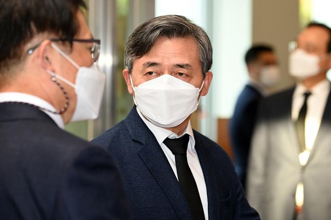 양승동 KBS사장이 26일 오후 서울 강남구 삼성서울병원 장례식장에 마련된 고 이건희 삼성전자 회장의 빈소에 들어서고 있다.
