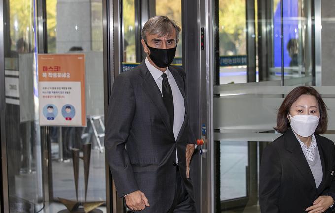 후안 이그나시오 모로 주한스페인대사가 27일 오전 故 이건희 삼성 회장이 안치된 서울 삼성병원 장례식장을 찾아 조문하고 있다.