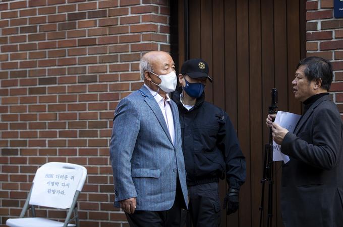 이명박 전 대통령의 횡령, 뇌물수수 상고심에서 징역 17년이 확정된 29일 오후 류우익 전 대통령 비서실장이 서울 논현동 이 전 대통령의 자택에 들어가고 있다.