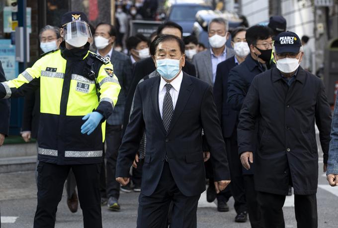 이재오 전 의원이 2일 오후 서울 강남구 논현동에 위치한 이명박 전 대통령의 자택을 나서고 있다.