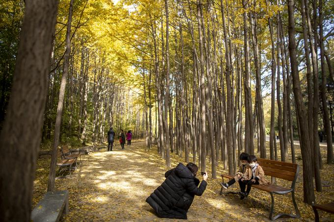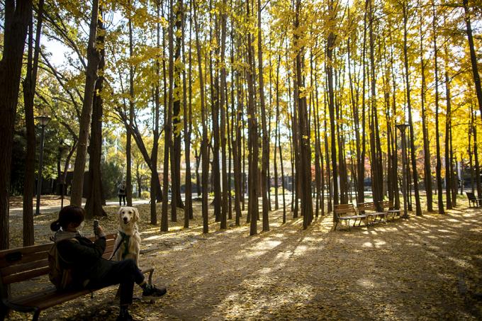 자연의 법칙은 어김이 없다. 깊어가는 가을을 따라 은행잎이 다시 노랗게 물들었다. 혼탁한 건 인간사일 뿐 자연은 늘 그렇게 정직하다. 5일 오후 서울 성동구 서울숲 풍경. 가을 정취 만끽하는 '견공'이 다 부럽다.
