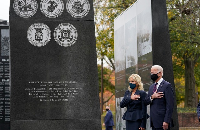 같은 날 바이든 당선인은 펜실베이니아주 필라델피아의 한국전쟁 참전 기념비를 방문해 헌화했다고 AP통신, NBC 등 현지 언론이 전했다.