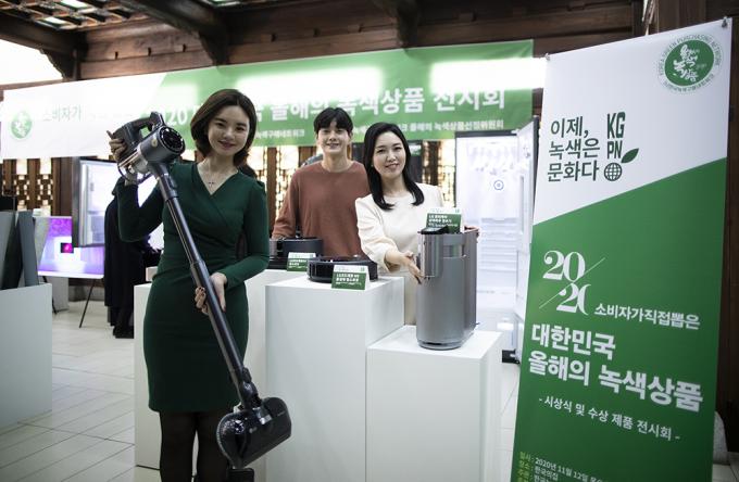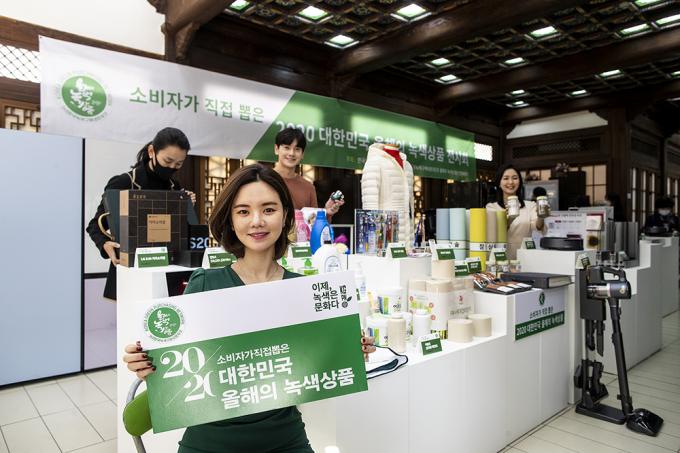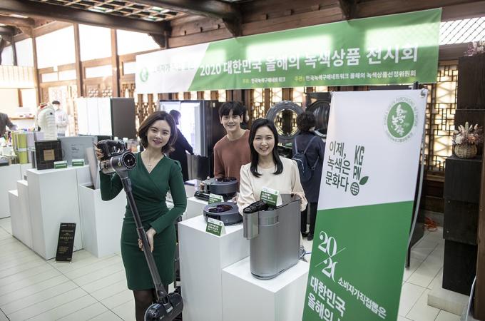 한국녹색구메네트워크가 12일 오전 서울 중구 한국의집에서 소비자가 직접 뽑은 2020 대한민국 올해의 녹색상품 시상식과 수상 제품 전시회를 열고 수상 제품을 알리는 홍보행사를 진행했다. 2020년 대한민국 올해의 녹색상품으로 LG전자, 삼성전자, LG하우시스, 라이브어스텍, 에덴바이오벽지, 인에코, 슈가버블, 그린테크롤, 수미, 헬씨티슈, 강철, 기쁨앤드, 공공디자인이즘, 수파드엘릭사, 덕화푸드, 한국철도공사 등 총 16개사 41개 제품이 선정되었다.