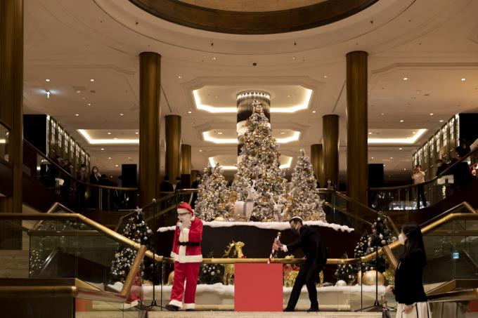 '밀레니엄 힐튼 서울, 크리스마스 기차' 25주년 기념 고객 대상 감사와 희망의 메세지 전달 행사가 16일 서울 중구 밀레니엄 힐튼 서울에서 열린 가운데 필릭스 부쉬(Felix Busch) 총지배인이 크리스마스 트리 점등을 하고 있다.