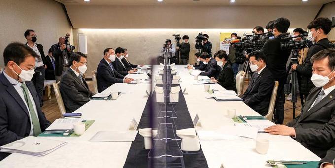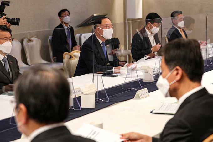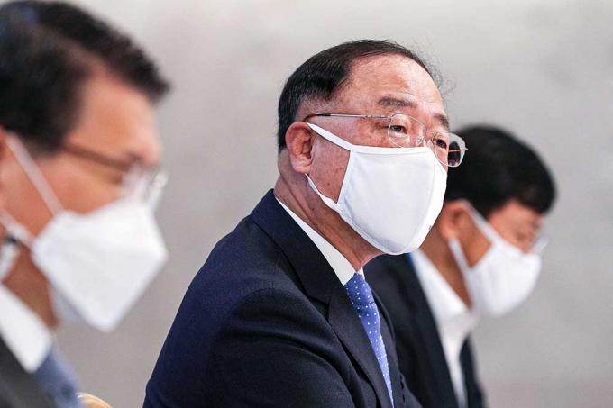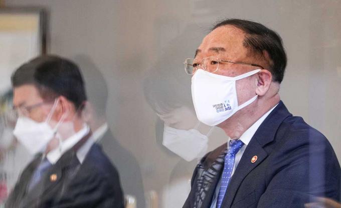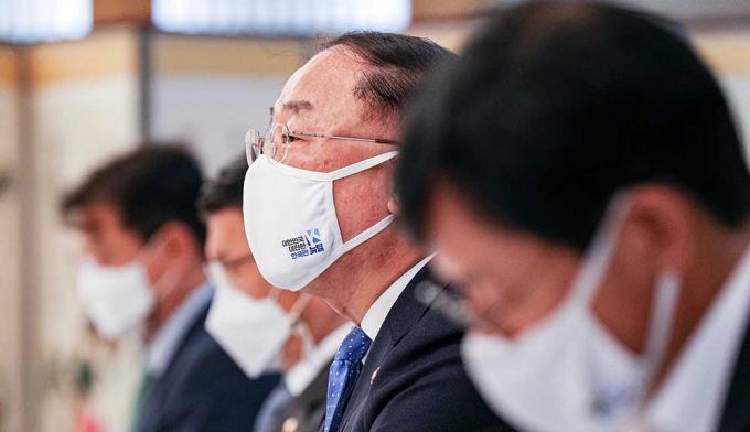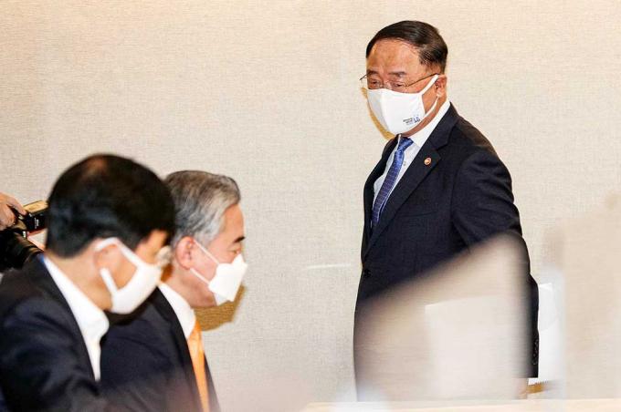 홍남기 경제부총리 겸 기획재정부 장관이 19일 서울 종로구 정부서울청사에서 열린 '제10차 부동산시장 점검 관계장관회의'에 참석하고 있다.